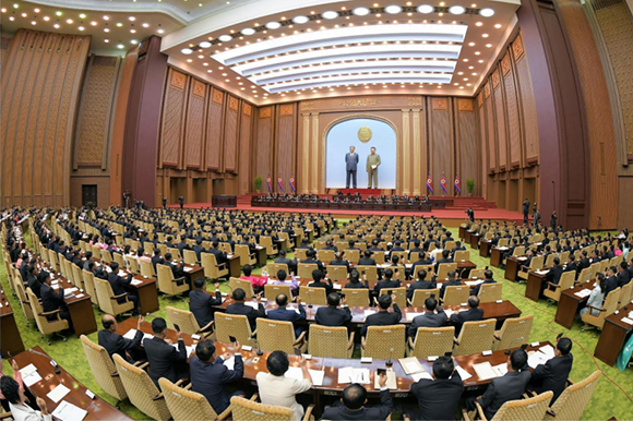 사회주의위업의 완성을 위한 숭고한 사명감과 조국과 인민에 대한 위대한 복무정신으로 충만된 김정은동지의 연설에 접한 전체 대의원들은 열광적인 박수와 환호로써 국가수반의 시정방침에 전적인 지지찬동을 표시하였다.