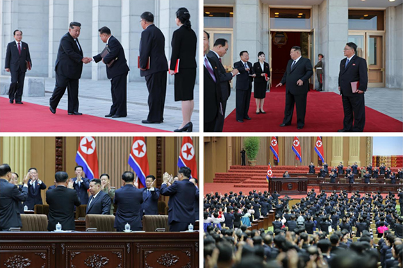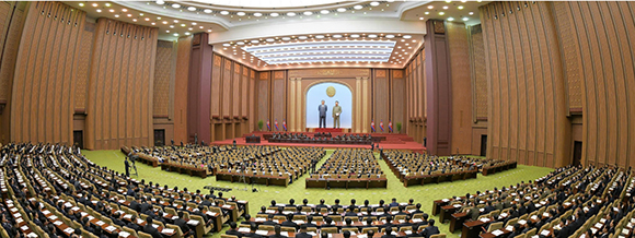 김정은동지께서는 인민들로부터 국정을 위임받았고 인민을 위하여 일할것을 결의한 대의원들이 공화국의 륭성과 인민의 리상실현을 위하여 보다 적극적으로,헌신적으로 분투해나갈것을 열렬히 호소하시였다.