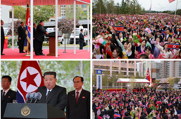 경애하는 김정은동지께서 준공을 기념하여 뜻깊은 연설을 하시였다.