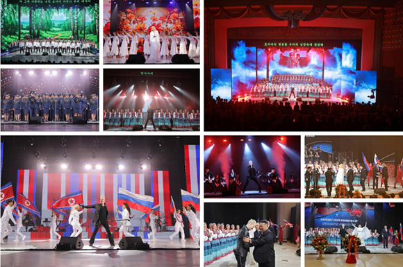 우리 당과 인민에게 있어서 신성하고 영광스러운 명절인 조선로동당창건 80돐을 공동의 경사, 공동의 명절로 뜻깊게 기념하고있는 로씨야련방의 훌륭한 축원과 친선의 정을 안고 평양을 방문한 로씨야예술사절들의 경축공연이 10월 9일 오후 만수대예술극장에서 진행되였다.