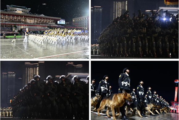 국가보위성종대, 사회안전군종대, 사회안전특별기동대종대가 수령보위, 제도보위, 인민보위의 전초를 믿음직하게 지켜갈 일념안고 용기백배하여 전진해갔다.