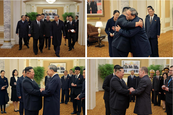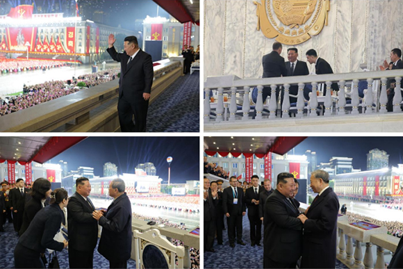 김정은동지께서는 조선로동당창건 80돐 경축열병의식에 초대된 각계층의 손님들과 여러 나라의 친근한 벗들을 열렬히 환영하시고 영광의 10월을 향하여 창조와 로력의 고귀한 땀을 바치고 진정을 고여온 온 나라 전체 인민들, 인민군장병들과 열병대원들에게 열렬한 축하의 인사를 보내시였다.