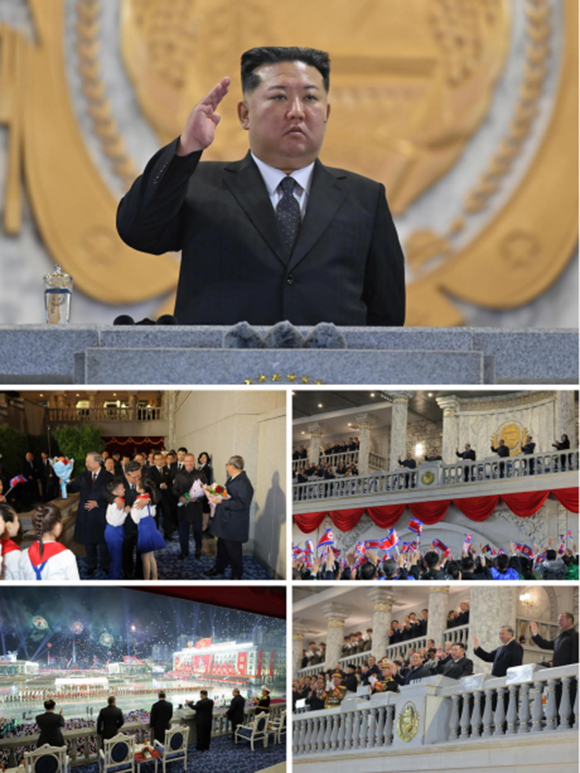 조선로동당 중앙위원회 정치국 상무위원회 위원들을 비롯한 당과 정부의 간부들, 도당위원회 책임비서들, 군부의 주요지휘성원들, 해외동포축하단 단장들이 주석단에 나왔다.