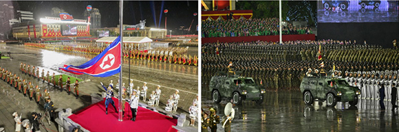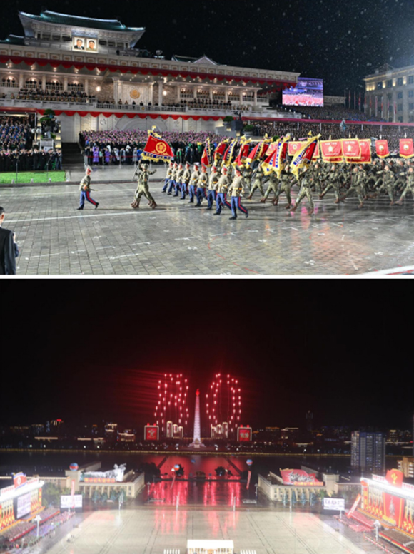 우리 당이 걸어온 승리와 영광의 80년, 창조와 변혁의 80년을 긍지높이 되새겨주는 례포소리가 열병광장을 뒤흔들었다.
