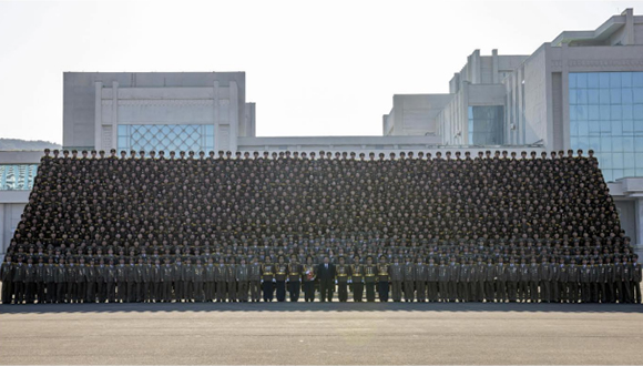 김정은동지께서는 조선로동당의 령도에 충실한 사회안전군의 전체 장병들이 지나온 80년의 연혁보다 더 값비싸고 영광스러운 복무의 년대기를 이어나가리라는 확신을 표명하시면서 사회안전성 일군들과 함께 청사에 길이 새겨질 뜻깊은 화폭을 남기시였다.