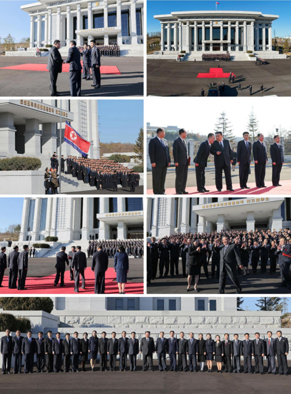 김정은동지께서 도착하시자 위대한 우리 국가의 강대성과 존엄의 최고대표자이신 김정은동지를 기관들에 모시는 참가자들의 무한한 격동이 우렁찬 《만세!》의 환호로 분출하였다.