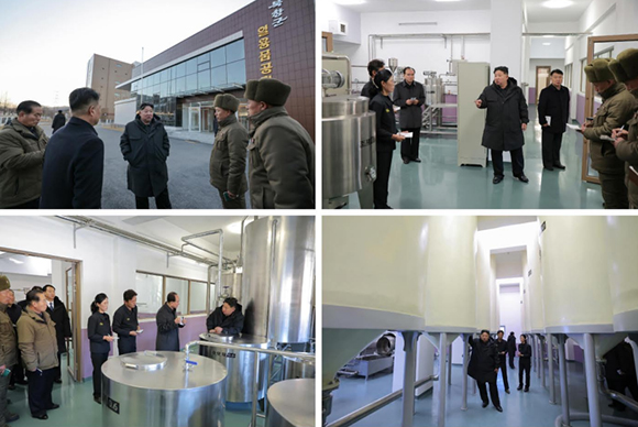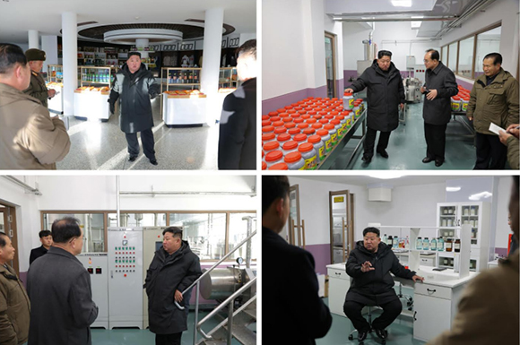 김정은동지께서는 군식료공장, 옷공장, 일용품공장의 생산시설, 문화후생시설들을 일일이 돌아보시면서 시공정형과 운영준비실태를 구체적으로 료해하시였다.