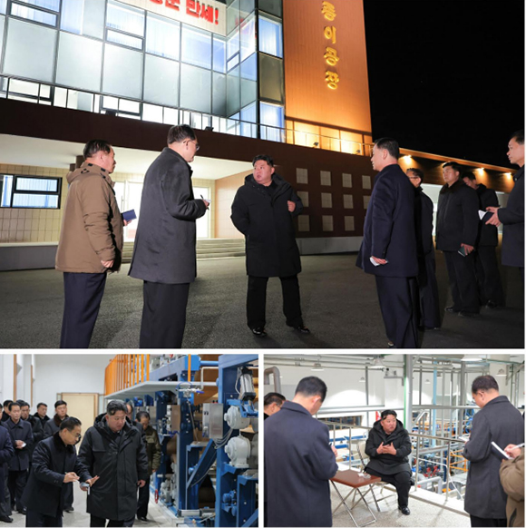 김정은동지께서는 과학기술, 교육, 문화생활을 비롯한 모든 령역에서 필수적인 종이수요를 충족시키기 위해서는 우리 원료에 기초한 우리 식의 제지법과 제지기술을 부단히 발전시켜나가야 한다고 하시면서 모든 도들이 평안남도에 시범적으로 일떠세운 공장건설의 경험을 받아들여 다음기 5개년계획기간내에 현대적인 종이공장들을 건설하는 문제를 보다 구체적으로 토의하고 결정해야 한다고 말씀하시였다.