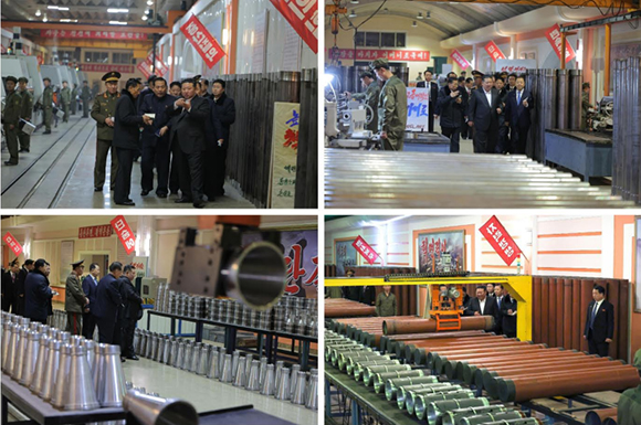 조선로동당 총비서이시며 조선민주주의인민공화국 국무위원장이신 경애하는 김정은동지께서 중요군수공업기업소들을 방문하시고 4.4분기 미싸일 및 포탄생산실태를 료해하시였다.