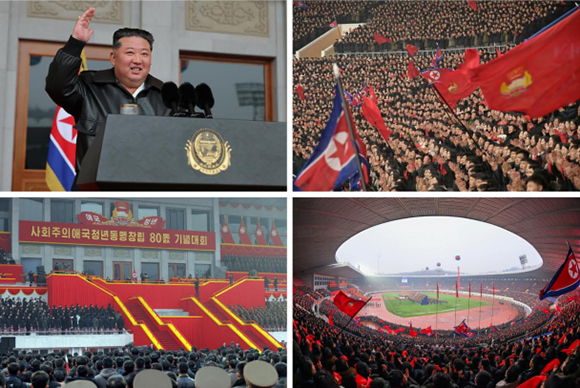 사회주의애국청년동맹창립 80돐 기념대회가 1월 16일 수도 평양의 김일성경기장에서 성대히 진행되였다.