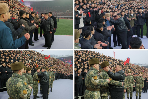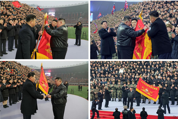 김정은동지께서는 어머니조국을 위해 투신하는것을 응당한 본분으로, 인생의 더없는 영예로 여기며 당의 부름앞에 무한한 충성과 로력적성과로 화답해나가는 그들의 특출한 소행을 높이 치하하시였다.
