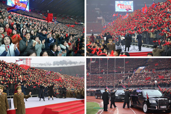 김정은동지께서는 열광의 환호에 따뜻이 답례하시며 청춘의 아름다운 희망과 포부를 조국의 번영을 위함에 깡그리 바치며 값높은 위훈의 자욱을 새겨가고있는 온 나라 청년들에게 축하의 인사를 보내시였다.