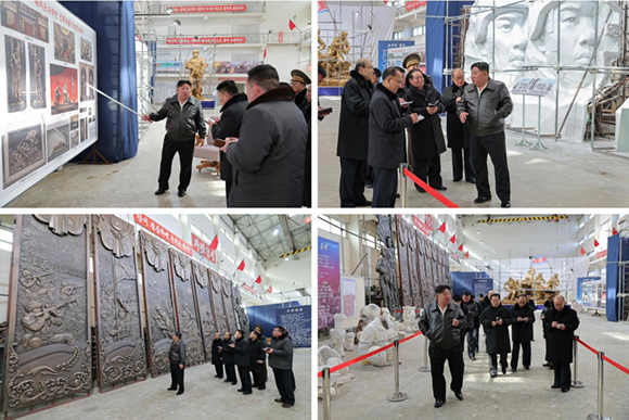 김정은동지께서는 상징탑, 중심군상, 부주제군상, 외벽장식조각판 등을 보시면서 창작정형을 료해하시였다.