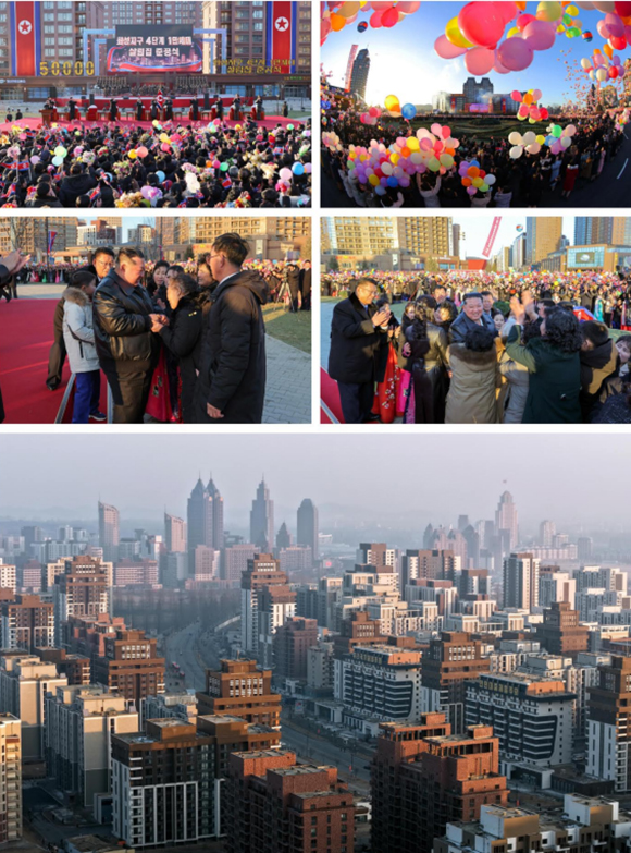 김정은동지께서는 새로 일떠선 화성지구가 이처럼 아름다운것은 선진문명을 체현한 대건축군의 웅자도 그러하지만 그속에 다름아닌 인민의 진정한 행복과 밝은 모습이 비껴있기때문이라고, 오늘은 수도 평양의 유구한 력사에 있어서 참으로 뜻깊은 날이라고 말씀하시였다.