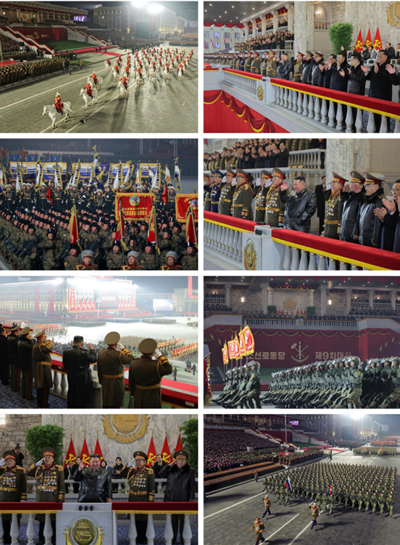 당 제9차대회기념 열병식은 조선로동당의 위업에 절대충성, 절대복종하는 최정예혁명무력을 전위에 내세우고 광휘로운 미래를 신심드높이 개척해가는 조선로동당의 위업, 주체혁명위업의 필승불패성을 힘있게 과시한 의의깊은 정치군사축전으로 청사에 아로새겨지게 될것이다.