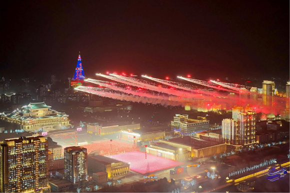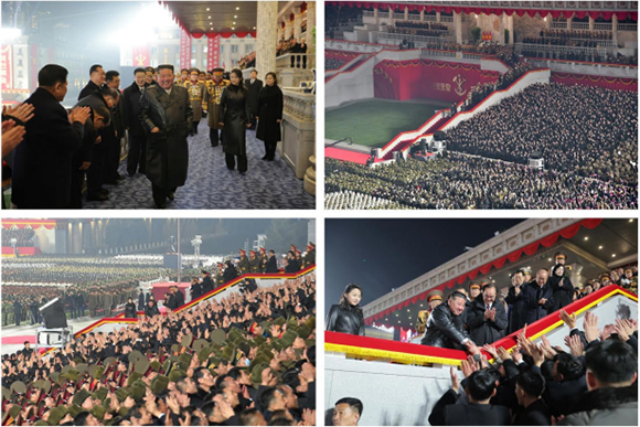 공연이 끝나자 김정은동지를 우러러 터치는 폭풍같은 《만세!》의 환호성이 또다시 광장을 진감하며 2월의 밤하늘에 끝없이 울려퍼졌다.