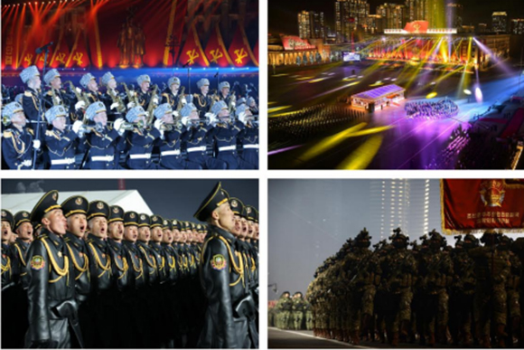열병식의 열광을 고조시키며 특색있는 공연무대가 광장에 펼쳐졌다.