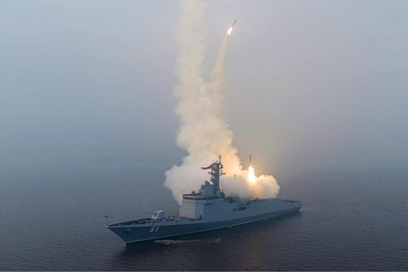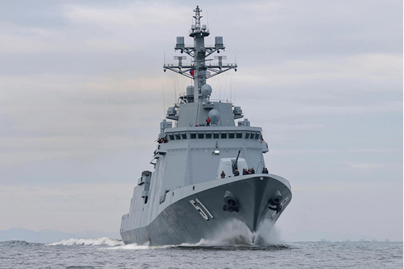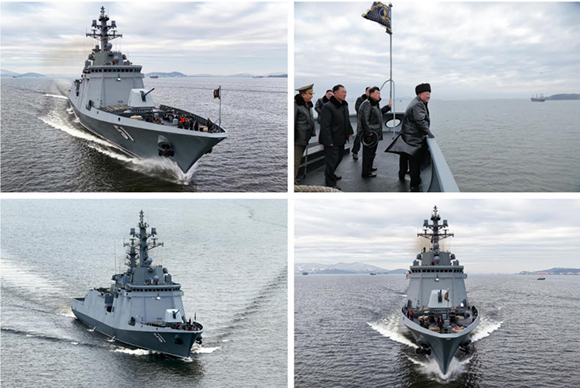 《우리 국가 해상방위력의 새로운 상징으로 되는 신형구축함의 작전운용평가시험들이 계획한바대로 순조롭게 진행되고있다.