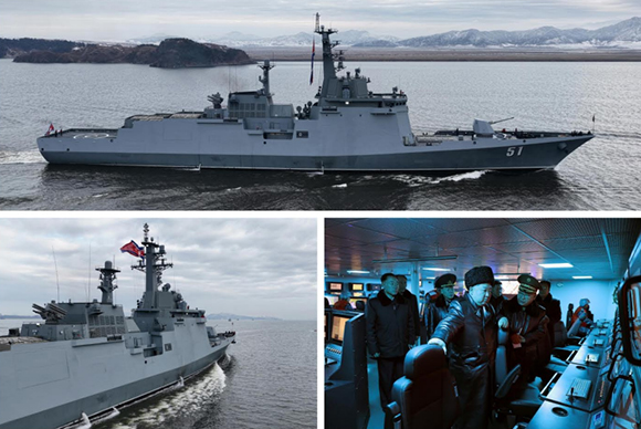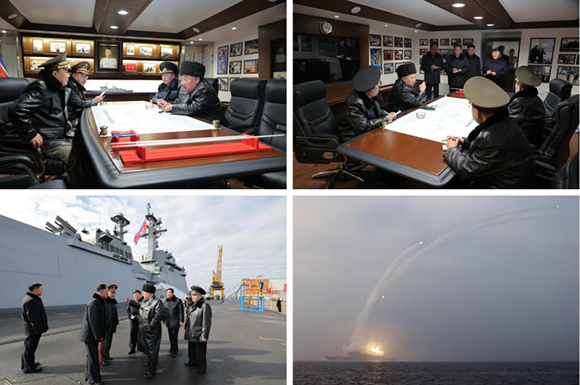 김정은동지께서는 함선공업부문의 일군들과 로동계급은 우리 당의 군사강국건설로선을 위력한 신형함선건조로 충직하게 받들어나가야 한다고 하시면서 우리 해군의 급진적인 변화를 가속화하는 계속혁신, 련속도약의 진군보폭을 줄기차게 내짚어야 한다고 말씀하시였다.