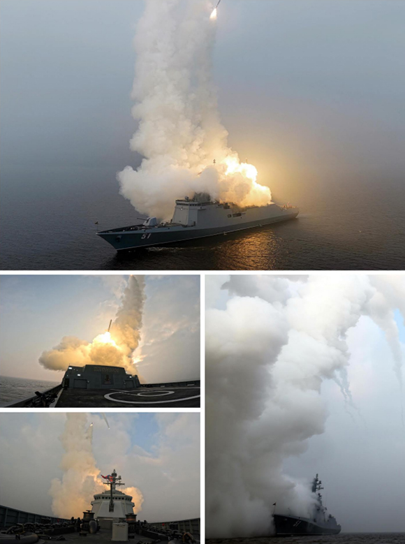 구축함에서의 전략순항미싸일시험발사는 성공적으로 진행되였다.
