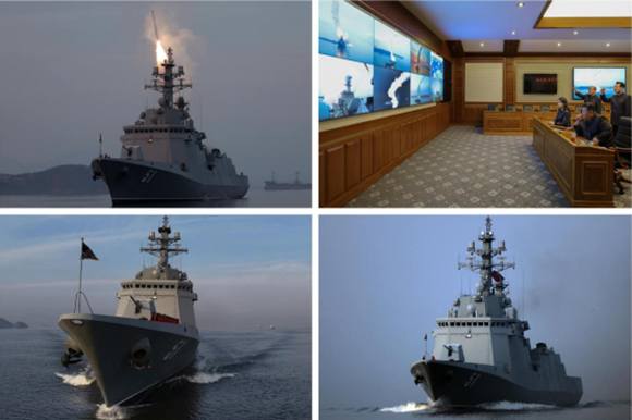 김정은동지께서는 함의 기동요소들과 이여의 무기체계들 즉 반항공, 반잠, 수뢰무기체계들의 운용능력평가를 완료하여 제시된 기한내에 함을 해군에 인도할데 대한 문제, 올해 당창건기념일을 목표로 한 또 다른 구축함건조사업을 다그칠데 대한 문제, 해군기지하부구조를 보강하고 신설할데 대한 문제 등 해군전력을 가속적으로 강화하기 위한 일련의 중요과업들을 제시하시였다.