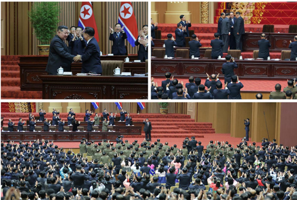 조선민주주의인민공화국 최고인민회의 의장, 부의장들이 의장석에 나왔다.