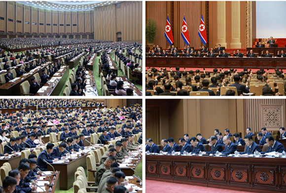 김정은동지께서는 국가건설과 국가활동에서 자주, 자립, 자위의 원칙과 인민대중제일주의리념을 일관하게 견지하면서 사회주의건설의 현 국면에 맞게 사상, 기술, 문화의 3대혁명을 보다 강력히 추동하는것이 중요하다고 강조하시면서 최고인민회의 대의원들이 국정의 주인, 인민의 대표답게 고심어린 노력을 다하여 앞으로의 5년을 보다 훌륭하고 보람있는 변혁의 5년으로 되게 하기 위하여, 더욱 장성발전될 우리 국가의 앞날을 위하여 힘차게, 줄기차게 일해나가자고 열렬히 호소하시였다.