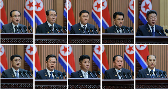 최고인민회의 의장 조용원대의원이 보고를 하였다.