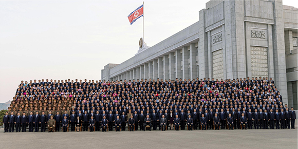 조선로동당 총비서이시며 조선민주주의인민공화국 국무위원장이신 경애하는 김정은동지께서는 3월 23일 최고인민회의 제15기 제1차회의에서 새로 임명된 내각성원들과 최고인민회의 제15기 대의원들을 평양의사당에서 만나시고 축하격려하시였다.
