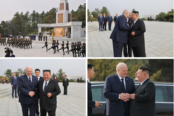 김정은동지께서와 알렉싼드르 루까쉔꼬동지는 조선의 해방을 위한 성전에서 고귀한 생명을 바친 쏘련군렬사들을 추모하여 묵상하시였다.
